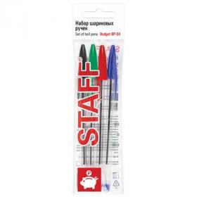 Ручки шариковые STAFF "Basic Budget BP-04", НАБОР 4 ЦВЕТА, линия письма 0,5 мм, 143872
