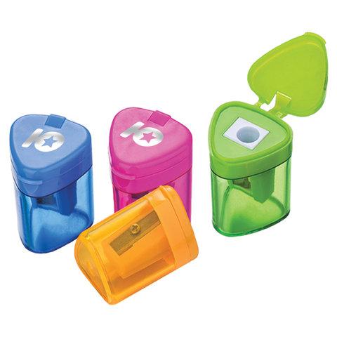 Точилка ЮНЛАНДИЯ "Трио", с контейнером, пластиковая, корпус ассорти, 228438