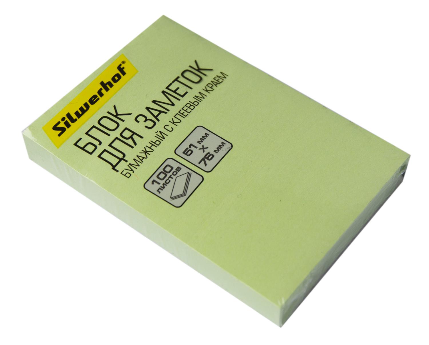 Блок самоклеящийся бумажный Silwerhof 682155-06 51x76мм 100лист. 75г / м2 пастель зеленый