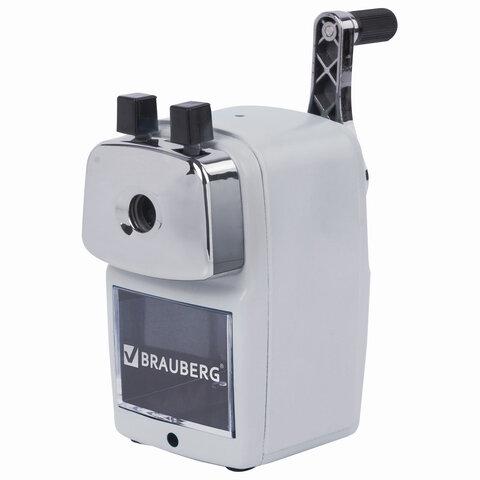 Точилка механическая BRAUBERG CLASSIC, для чернографитных и цветных карандашей, корпус светло-серый, 272002