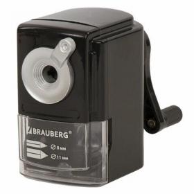 Точилка механическая BRAUBERG "STYLE", для ч / гр и цветных карандашей (в том числе утолщенных), крепление к столу, корпус черный, 228482