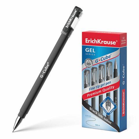 Ручка гелевая ERICH KRAUSE "G-cube", ЧЕРНАЯ, корпус черный, игольчатый узел 0,5 мм, линия письма 0,4 мм, 46447