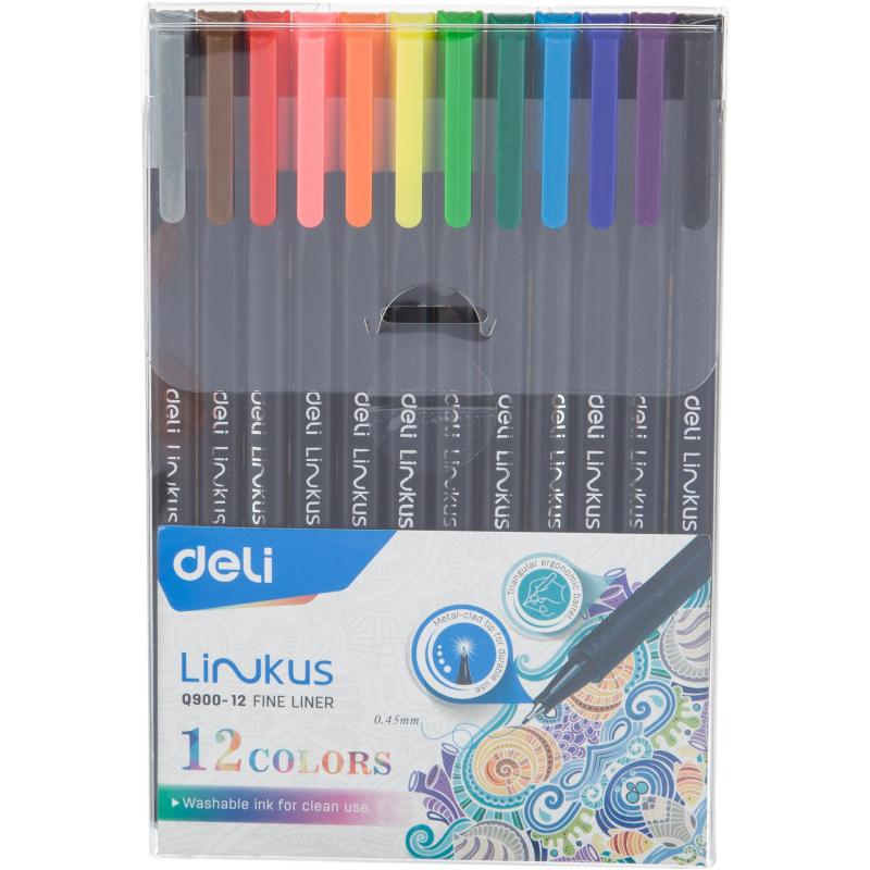 Упаковка наборов капиллярных ручек Deli Linkus d=0.45мм чернила ассорти [eq900-12]