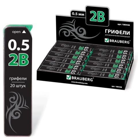 Грифели запасные 0,5 мм, 2B, BRAUBERG, КОМПЛЕКТ 20 шт., "Black Jack", 180448