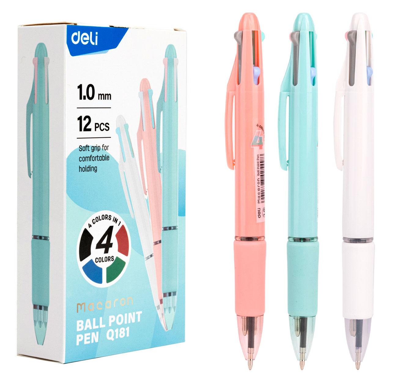Ручка шариков. автоматическая Deli Arris EQ182 прозрачный / серый d=0.7мм ассор. черн. 4стерж. резин. манжета 4цв.