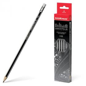 Карандаш чернографитный ERICH KRAUSE, 1 шт., "Megapolis", HB, с ластиком, корпус серебристый, заточенный, 32860