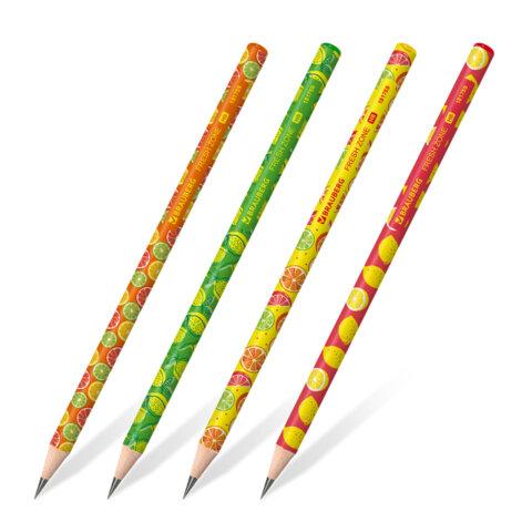 Карандаш чернографитный BRAUBERG "FRESH ZONE", 1 шт., HB, корпус ассорти, 181759