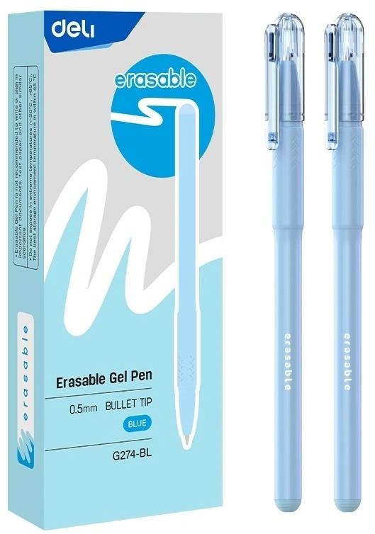 Набор ручек гелев. Deli (EG274-BL-P) голубой d=0.5мм син. черн. кор. (12шт) пулевидный пиш. наконечник кругл. резин. манжета стираемая стираемые чернила