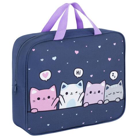 Папка на молнии с ручками ЮНЛАНДИЯ А4, 1 отделение, пластик, 80 мм, "Dreamy kitty", 273361