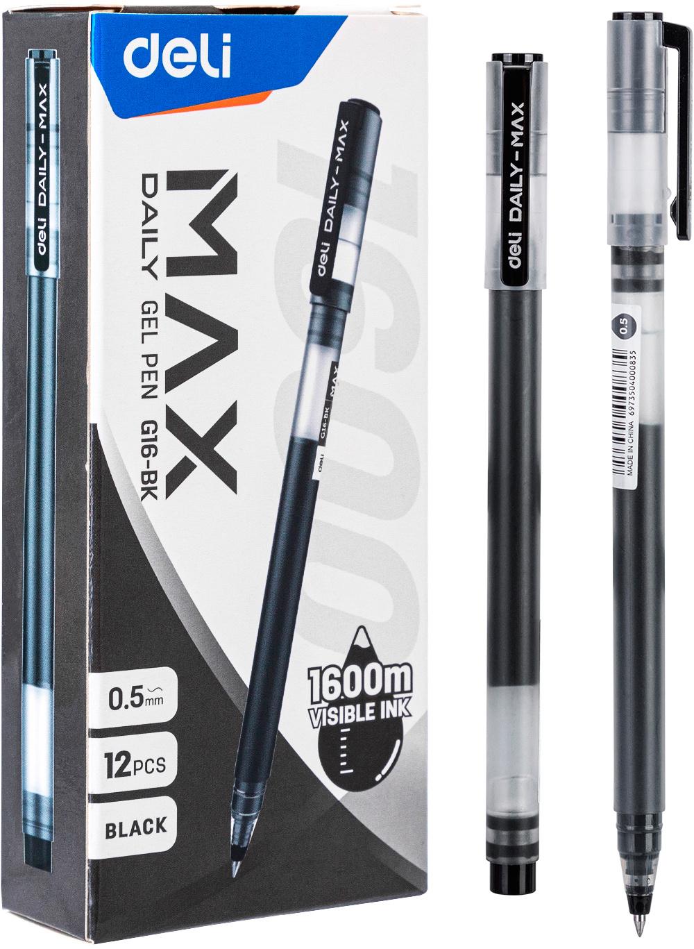 Набор ручек гелев. Deli Daily Max EG16-BK-P черн / прозрачный d=0.5мм черн. черн. (12шт)