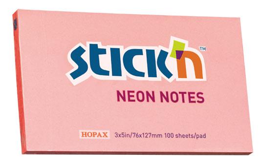 Блок самоклеящийся бумажный Stick`n 21170 76x127мм 100лист. 70г / м2 неон розовый