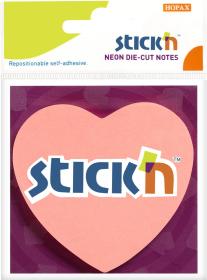 Блок самоклеящийся бумажный Stick`n 21545 70x70мм 50лист. 70г / м2 неон розовый вырубной клей по периметру "сердце" европодвес