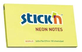 Блок самоклеящийся бумажный Stick`n 21135 76x127мм 100лист. 70г / м2 неон желтый