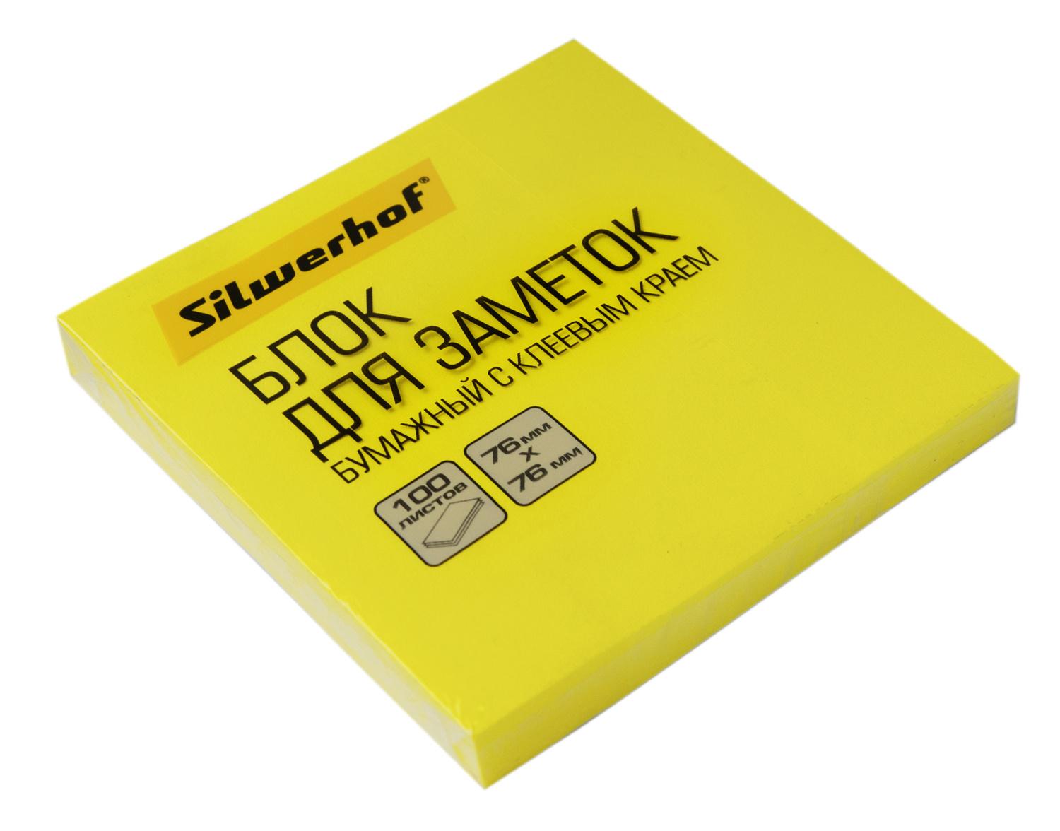 Блок самоклеящийся бумажный Silwerhof 682161-05 76x76мм 100лист. 75г / м2 неон желтый