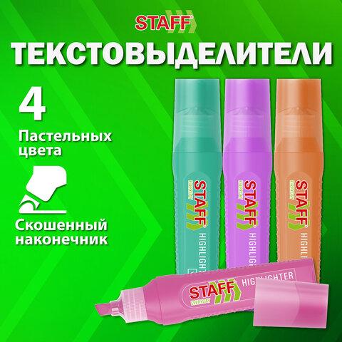 Набор текстовыделителей 4 ПАСТЕЛЬНЫХ ЦВЕТА, STAFF "EVERYDAY HL-707", линия 1-5 мм, скошенный наконечник, 152549