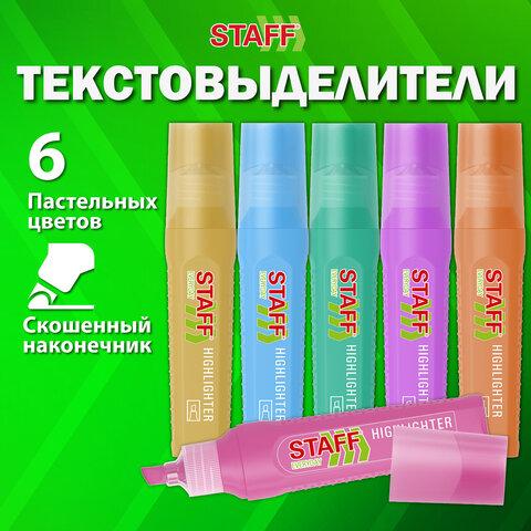 Набор текстовыделителей 6 ПАСТЕЛЬНЫХ ЦВЕТОВ, STAFF "EVERYDAY HL-707", линия 1-5 мм, скошенный наконечник, 152551