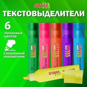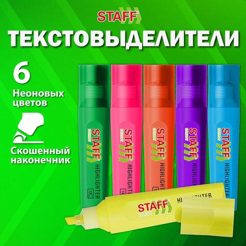 Набор текстовыделителей 6 НЕОНОВЫХ ЦВЕТОВ, STAFF "EVERYDAY HL-720", линия 1-5 мм, скошенный наконечник, 152556