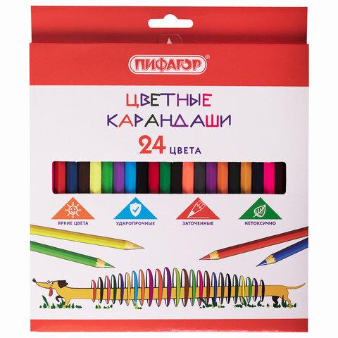 Карандаши цветные ПИФАГОР "Веселая такса", 24 цвета, шестигранные, натуральное дерево, 181808