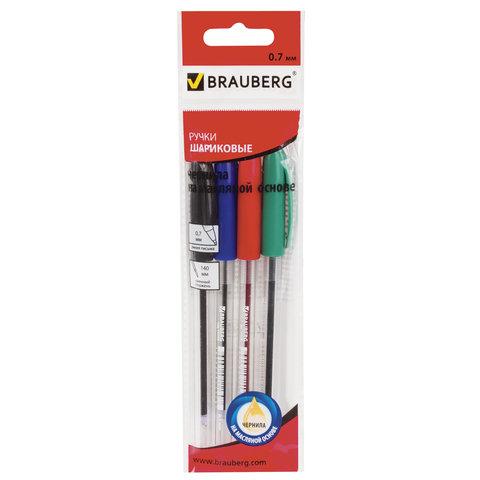 Ручки шариковые масляные BRAUBERG, НАБОР 4 шт., АССОРТИ, "Rite-Oil", узел 0,7 мм, линия письма 0,35 мм, 142150