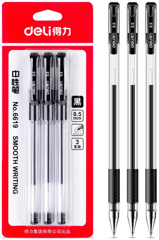Набор ручек гелев. Deli 6619-BK прозрачный / черный черн. черн. блистер (3шт) линия 0.5мм резин. манжета