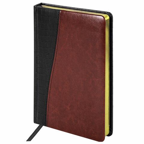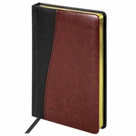 Ежедневник недатированный А5 138х213 мм BRAUBERG "Cayman" под кожу, 160 л., черный / темно-коричневый, 123399