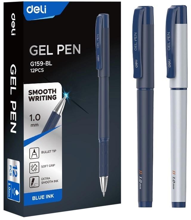 Ручка гелев. Deli EG159-BL ассорти d=1.0мм син. черн. резин. манжета