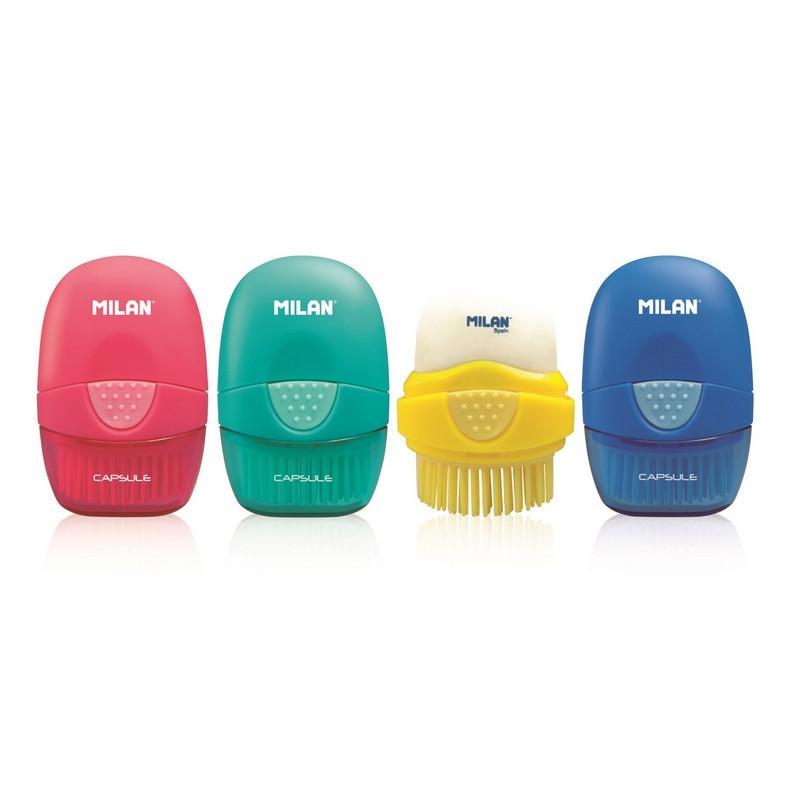 Ластик каучуковый Milan Capsule в пластиковом чехле с щёткой, цв в асс