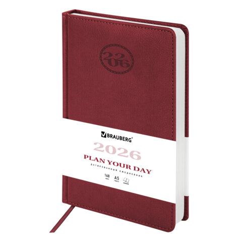 Ежедневник датированный 2026, А5, 138x213 мм, BRAUBERG "Favorite", под кожу, бордовый, 117034