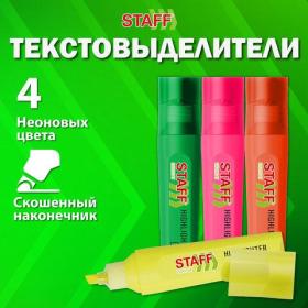 Набор текстовыделителей 4 НЕОНОВЫХ ЦВЕТА, STAFF "EVERYDAY HL-720", линия 1-5 мм, скошенный наконечник, 152555