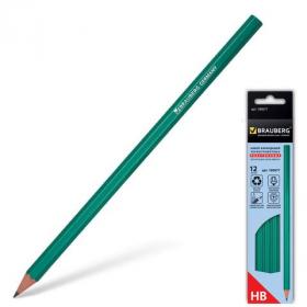 Карандаши чернографитные BRAUBERG НАБОР 12 шт., НВ, без резинки, пластиковый зеленый корпус, 180677