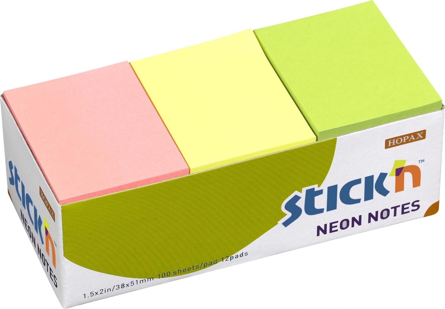 Блок самоклеящийся бумажный Stick`n 21131 38x51мм 100лист. 70г / м2 неон ассорти бокс (упак.:1шт)