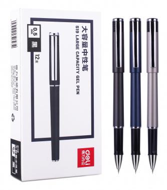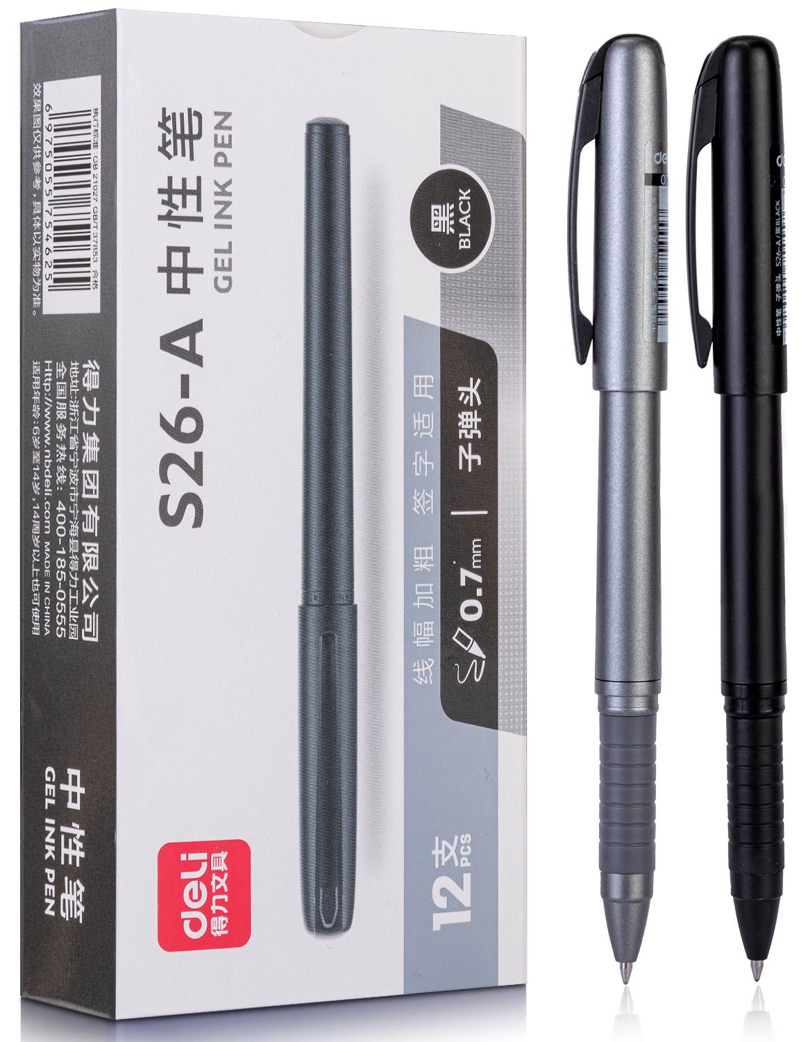 Набор ручек гелев. автоматическая Deli (S11-BK-P) ассорти черн. черн. кор.карт. (12шт) линия 0.5мм резин. манжета