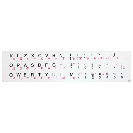Наклейка на клавиатуру, флуоресцентные буквы, русские розовые, латинские черные на белой подложке