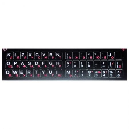 Наклейка на клавиатуру, флуоресцентные буквы, русские розовые, латинские белые на черной подложке