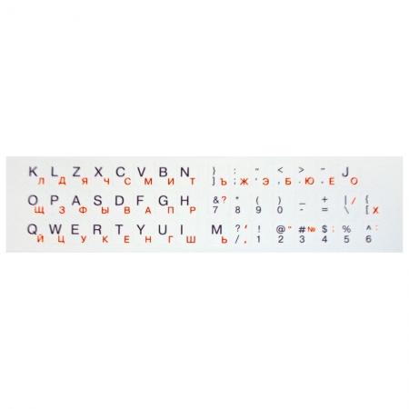 Наклейка на клавиатуру, буквы русские красные, латинские и символы чёрные на белой подложке