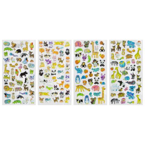 Наклейки гелевые "Зверушки", 17,5х9 см, ассорти 4 вида, FUNSTER (ФАНСТЕР), 666095