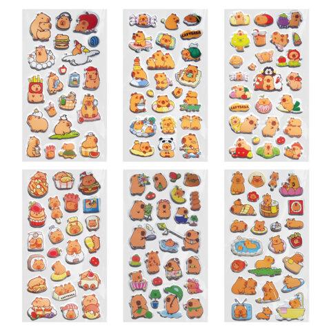Наклейки зефирные "Капибары", 18х9,5 см, ассорти 6 видов, FUNSTER (ФАНСТЕР), 666093