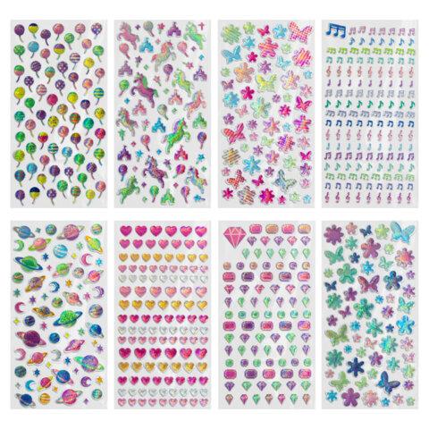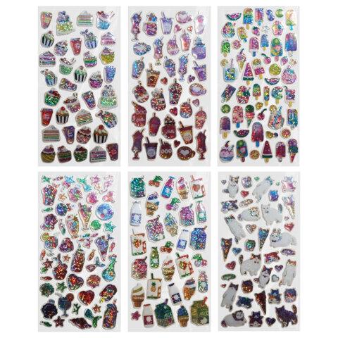 Наклейки гелевые "Блестящий микс", 15,5х9,5 см, ассорти 6 видов, FUNSTER (ФАНСТЕР), 666086