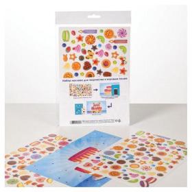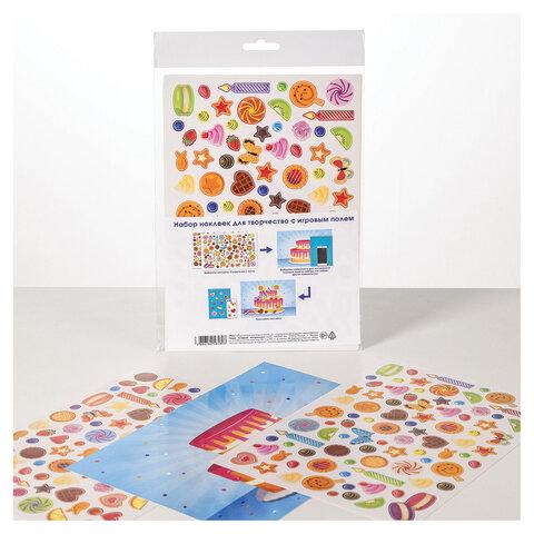 Наклейки бумажные с игровым полем НАБОР 2 листа, 184 наклейки, "Сладкое настроение", HATBER, 2Н5н
