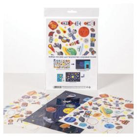Наклейки бумажные с игровым полем НАБОР, 2 листа, 184 наклеек, "Космическое приключение", HATBER, 2Н5н