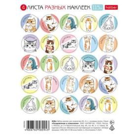 Наклейки бумажные для поощрения и оценки, НАБОР 4 листа, 115 наклеек, "Котики", HATBER, 4Н6н