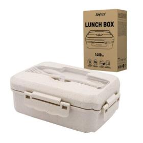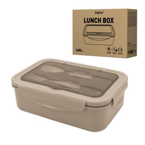 Ланч-бокс контейнер, 1 секция, 3 отделения, 1,4 л, ложка, вилка, 8х21х14 см, бежевый, JOYLUX (ДЖОЙЛЮКС) ECO, 609346