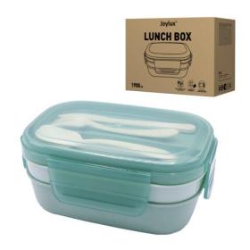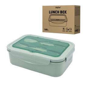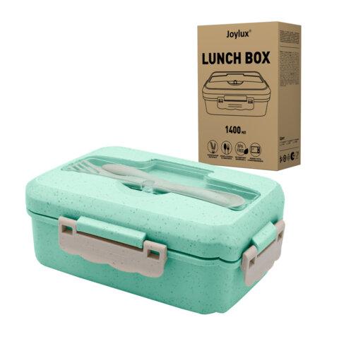 Ланч-бокс контейнер, 1 секция, 3 отделения, 1,4 л, ложка, вилка, 8х21х14 см, мятный, JOYLUX (ДЖОЙЛЮКС) ECO, 609344