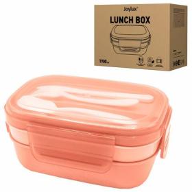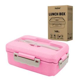 Ланч-бокс контейнер, 1 секция, 3 отделения, 1,4 л, ложка, вилка, 8х21х14 см, розовый, JOYLUX (ДЖОЙЛЮКС) ECO, 609345