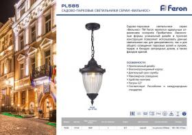 Светильник садово-парковый, серии «Вильнюс», (НСУ) FERON PL585 60W, E27, 230V, IP44, цвет черный, на цепочке, 180*180*810мм
