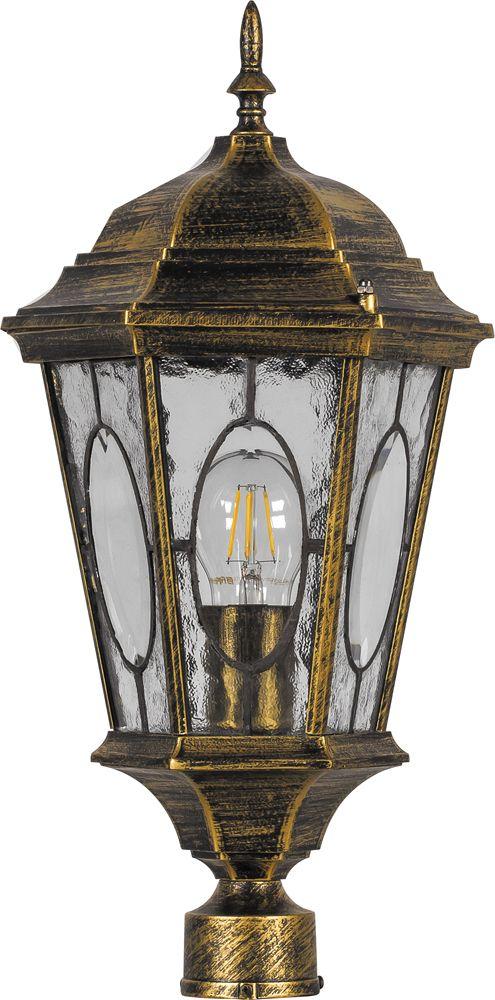 Светильник садово-парковый, серии «Рим», (НТУ) FERON PL157 60W, E27, 230V, IP44, цвет черное золото, 6-и гранник, столб, 240*630*2200мм
