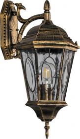 Светильник садово-парковый, серии «Венеция», (НБУ) FERON PL131 60W, E27, 230V, IP44, цвет черное золото, 6-и гранник, на стену вниз, 205*230*380мм