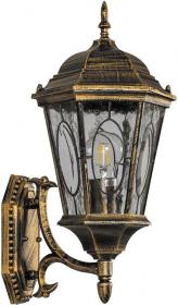 Светильник садово-парковый, серии «Рим», (НБУ) FERON PL160 60W, E27, 230V, IP44, цвет черное золото, 6-и гранник, на стену вверх, 205*245*440мм