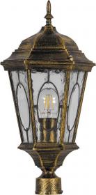 Светильник садово-парковый, серии «Рим», (НТУ) FERON PL162 60W, E27, 230V, IP44, цвет черное золото, 6-и гранник, на столб, 205*175*440мм