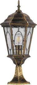 Светильник садово-парковый, серии «Рим», (НТУ) FERON PL163 60W, E27, 230V, IP44, цвет черное золото, 6-и гранник, на постамент, 205*175*480мм